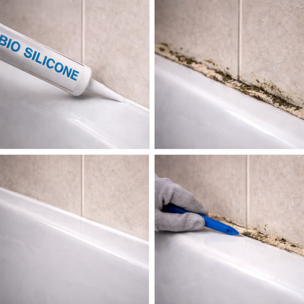 다세대 건물 공사를 하면서 욕실마다 바이오 실리콘으로 코킹을 했습니다. 바이오 실리콘은 항균 성분이 포함된 제품이라 곰팡이에 강하다고 알려져 있고, 욕실 시공에서 가장 많이 쓰이는 제품이었습니다. 그런데 몇 개월 뒤 한 집에서 연락이 왔습니다. 곰팡이가 너무 심하게 생긴다며 실리콘을 다시 쏴달라는 거였습니다.