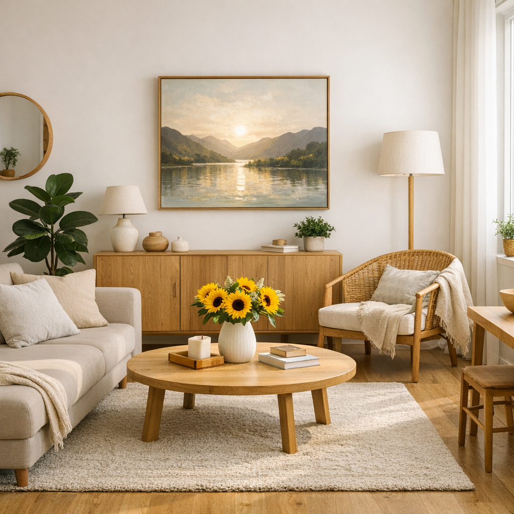 특히 그림 배치도 중요했습니다. 소파에 앉았을 때 정면에 보이는 그림 하나만 남기고, 나머지는 수납했습니다. 풍수에서는 해바라기나 과일 그림처럼 풍성함을 상징하는 이미지를 권장하는데, 저는 개인적으로 추상화 한 점을 걸어뒀습니다. 중요한 건 그림의 종류보다 '너무 많지 않게' 두는 것이더라고요. 조화나 드라이플라워는 풍수에서 음기(陰氣)를 상징한다고 해서 전부 치웠습니다. 음기란 생명력이 떨어지고 정체된 에너지를 의미하는 용어입니다(출처: 대한건축학회). 제가 키우던 페이크 식물들이 사실 집 분위기를 무겁게 만들고 있었던 거죠.