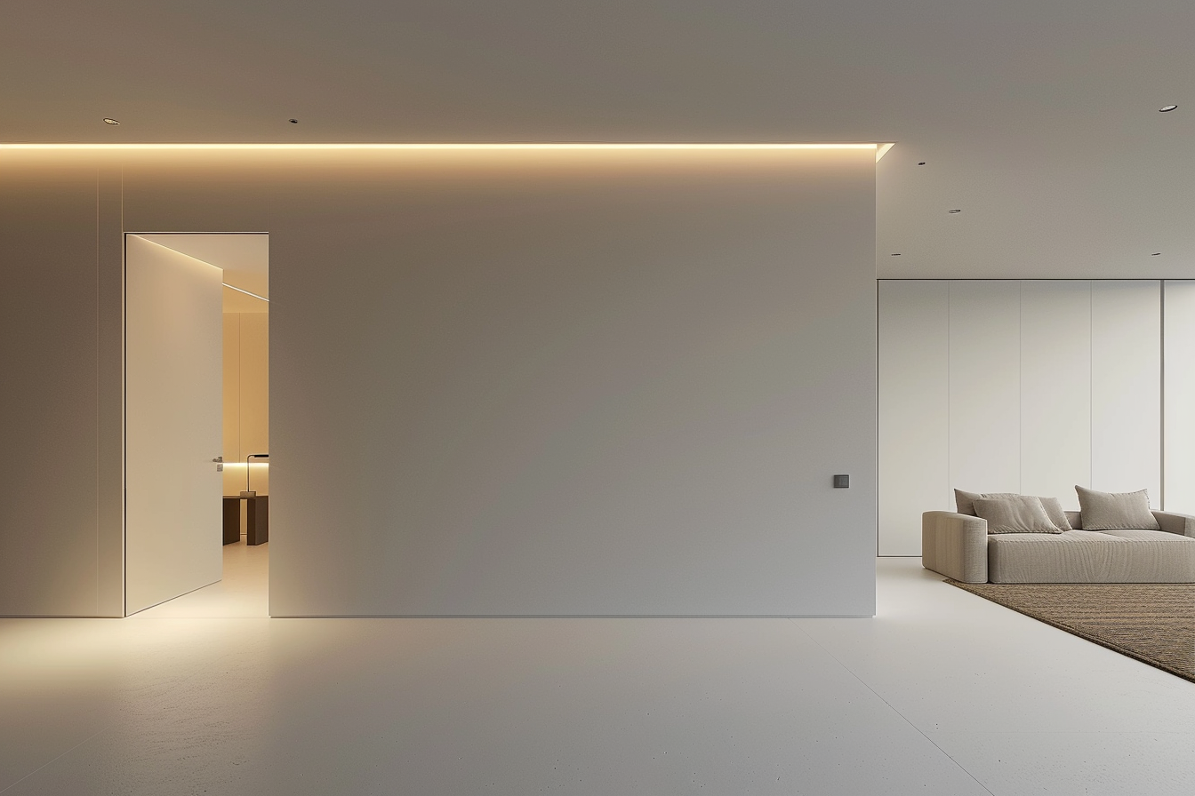 A. 벽지로는 히든도어 구현이 불가능하므로, 벽 전체를 페인트, 무늬목, 인테리어 필름 등으로 다시 마감해야 합니다. 이 과정에서 목공 작업, 마이너스 걸레받이, 무몰딩 작업 등이 필요하며, 비용은 1천만 원 이상 소요될 수 있습니다. 거주 기간이 짧거나 예산이 제한적이라면 9mm 문선 도어 같은 대안을 고려하는 것이 현명합니다.